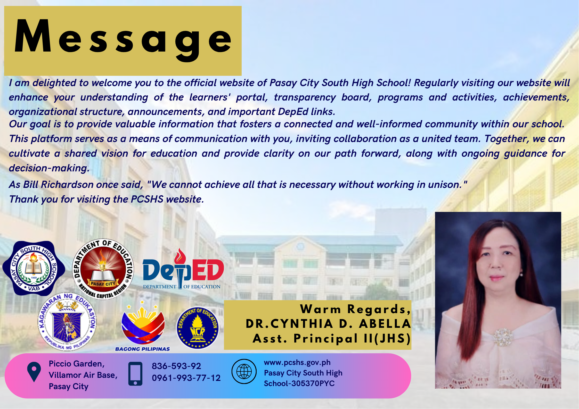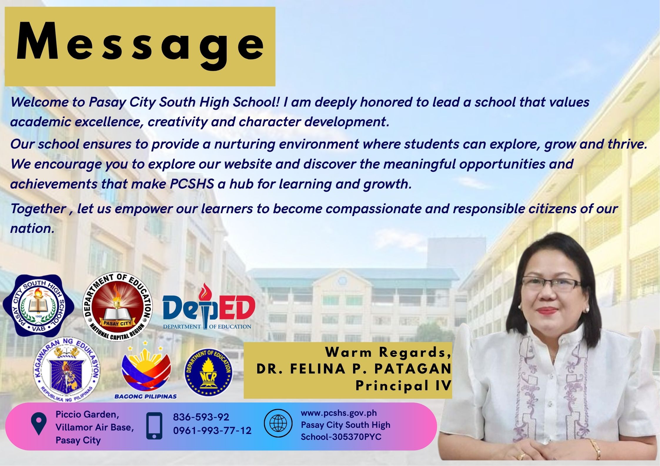 No dream is unattainable for someone who has the desire and determination to pursue and achieve her goals. Our colleague Dr. Basilisa D Tomimbang, the newly installed Public Schools District Supervisor of the Division of Pasay, is the best example of this.